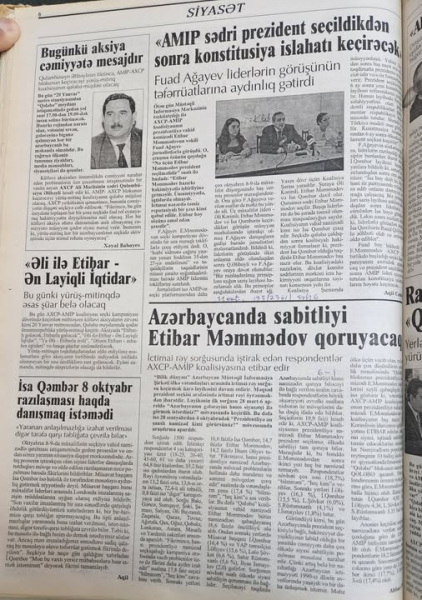 O, İsa Qəmbər və Etibar Məmədov arasında seçki ilə bağlı razılaşma sənədi layihəsinin müəlliflərindən olmuş tanınmış hüquqşünas Fuad Ağayevin 10 oktyabr 2003- cü il tarixli mətbuat konfransında səsləndirdiyi fikirləri sitat gətirib.